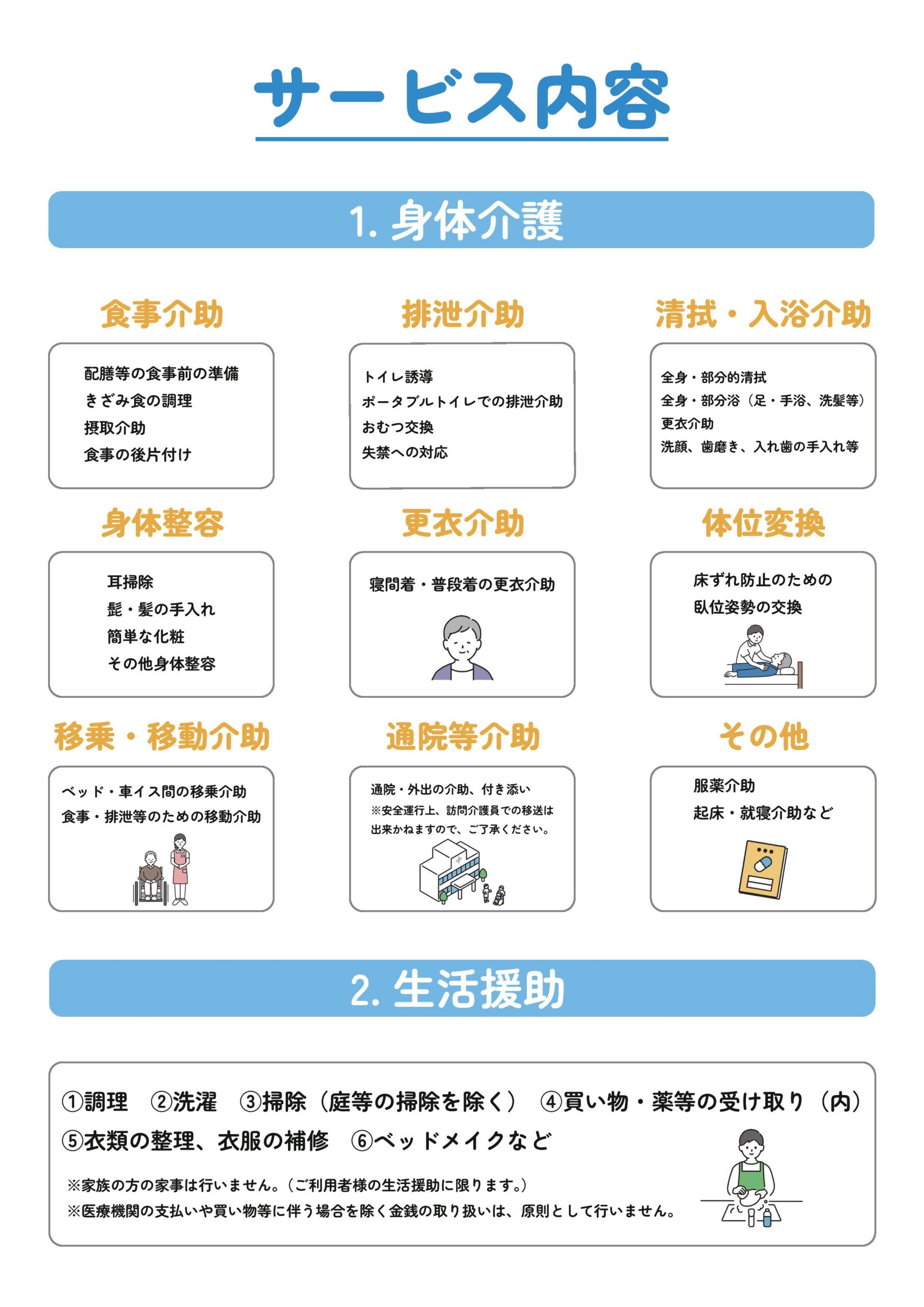 ご利用者様のご希望に添って、介護の専門家がご自宅にお伺いし、サービスを提供いたします。